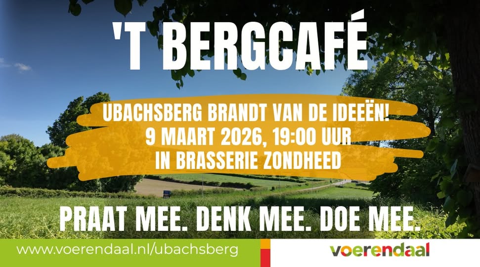 VOERENDAAL – Inwoners van Ubachsberg organiseren op maandag 9 maart een ‘BergCafé’ om te praten over de toekomst van het dorp. Volgens de initiatiefnemers is de wens om de bestaande inwonersdialoog uit te bouwen naar een ‘dorpscoalitie’ waarin iedereen die zich betrokken voelt kan meedoen.